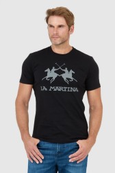 LA MARTINA Tricou negru pentru bărbați cu logo gri