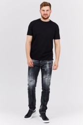Tricou pentru bărbați VALENTINO de culoare neagră, cu crampoane pe umeri. Decolteu rotund, cu nervuri.