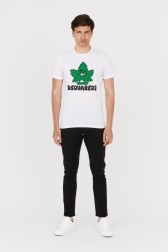 DSQUARED2 Tricou alb cu frunze verzi pentru bărbați