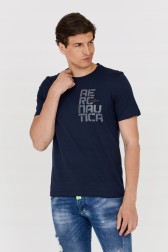 AERONAUTICA MILITARE Tricou din bumbac albastru marin pentru bărbați