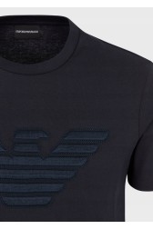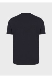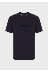 Tricou din bumbac pentru bărbați Emporio Armani, în albastru marin. Logo mare brodat pe față. Decolteu rotund cu nervuri. Mâneci scurte.