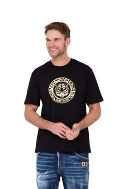 JUST CAVALLI Tricou negru T-round Gold pentru bărbați
