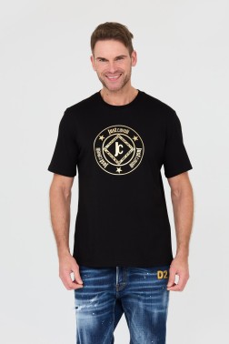 JUST CAVALLI Tricou negru Fiche Gold pentru bărbați