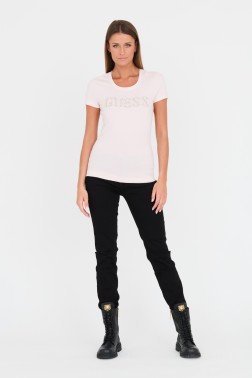 Tricou din bumbac Stones Logo Tee pentru femei, roz, de la Guess.