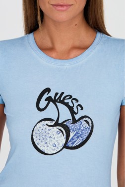 Tricou pentru femei cu imprimeu și zirconiu de la Guess.