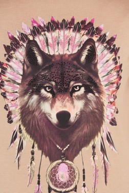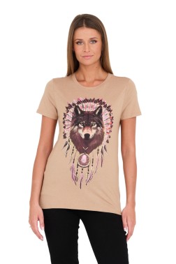 Tricoul din bumbac pentru femei GUESS Brown cu lup