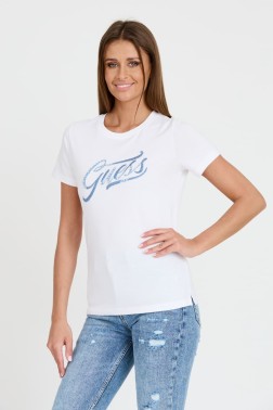 Tricou alb pentru femei STONES&EMBRO TEE, de la Guess.