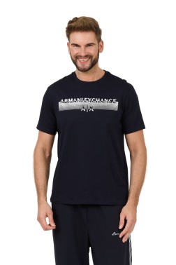 ARMANI EXCHANGE Tricou albastru marin pentru bărbați cu logo argintiu