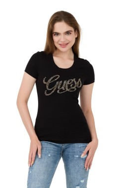 Tricou negru pentru femei cu mărgele Script Tee, de la Guess.