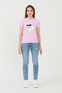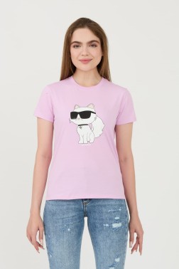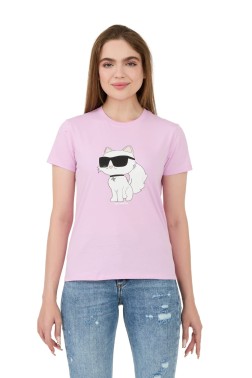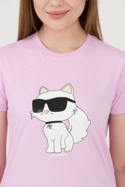 Tricou pentru femei KARL LAGERFELD Lavender Iconic 2.0 Choupette