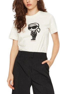 Tricou KARL LAGERFELD Ikon Sketch Karl bej pentru femei