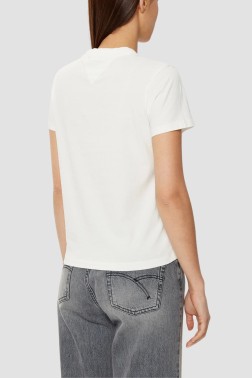 Tricou bej pentru femei cu logo mic de la Tommy Jeans.