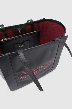 ALEXANDER MCQUEEN Чорна шкіряна сумка-шоппер з червоним логотипом