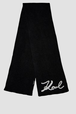 Жіночий чорний шарф з вовни з логотипом KARL LAGERFELD