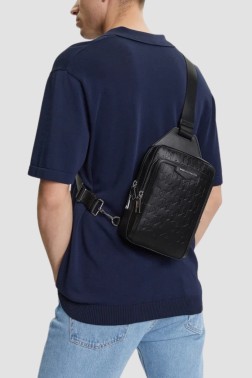 KARL LAGERFELD Чорна шкіряна сумка Loom Sling Bag - це сучасна модель з компактним дизайном, що вирізняється тонким тисненням та елегантною обробкою. Вона ідеально підходить для повсякденного використання, пропонуючи комфорт у використанні та фірмовий позачасовий стиль бренду.