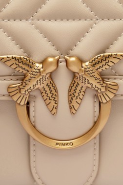 Бежева жіноча сумка Love One Classic DC від Pinko - елегантний аксесуар з високоякісної натуральної шкіри. Сумочка має регульований ремінець, два відділення, розділені кишенею на блискавці, та додаткову кишеню на блискавці для зручної організації. Для захисту сумки під час зберігання до неї додається мішечок для пилу.